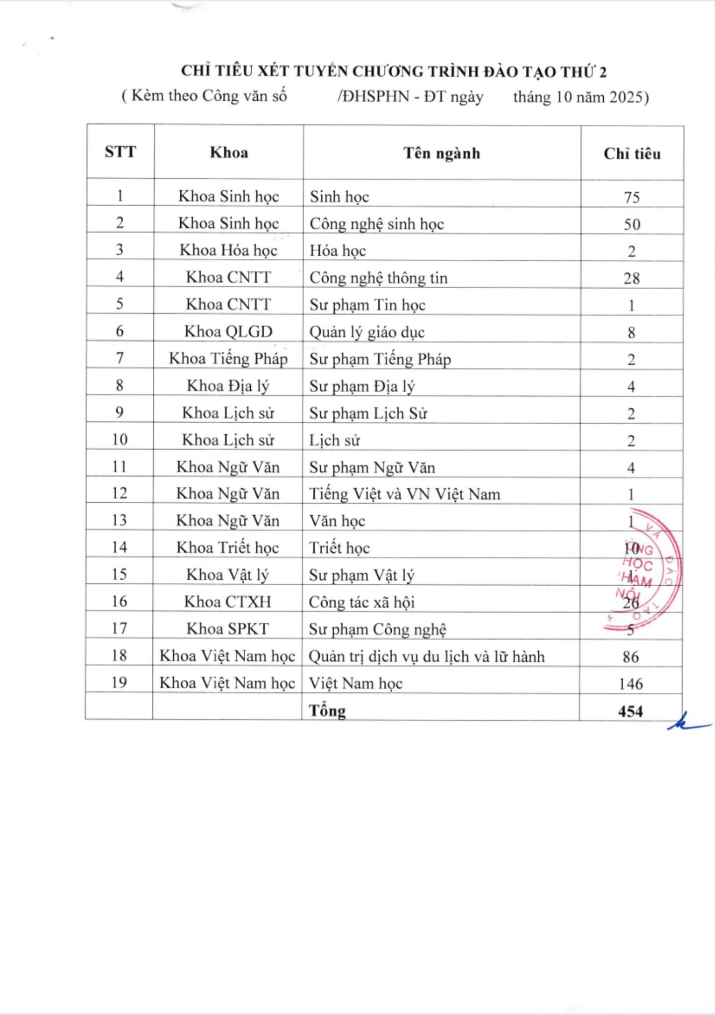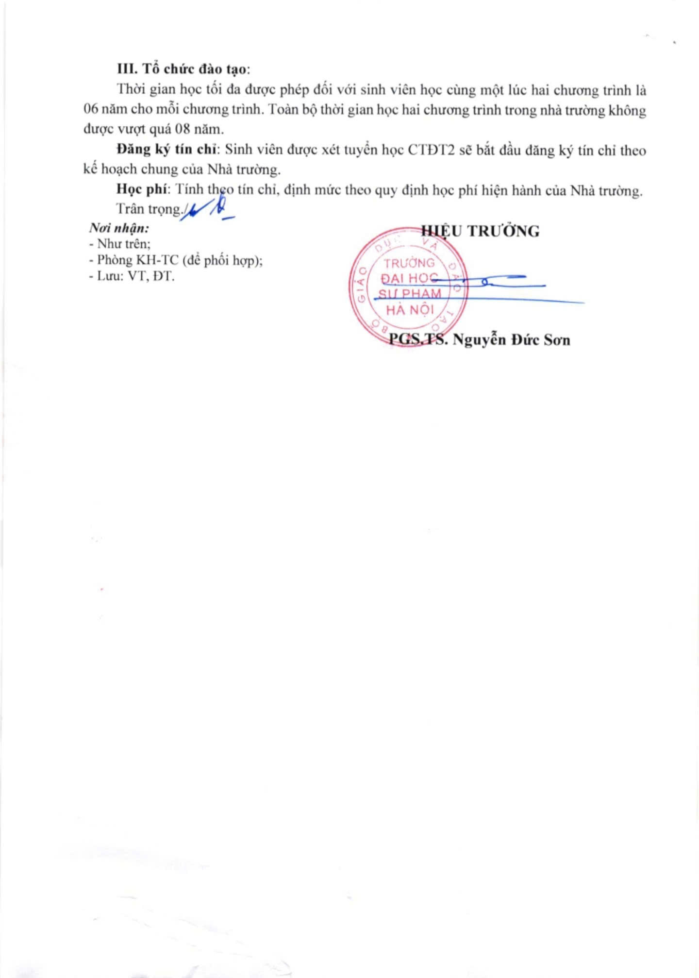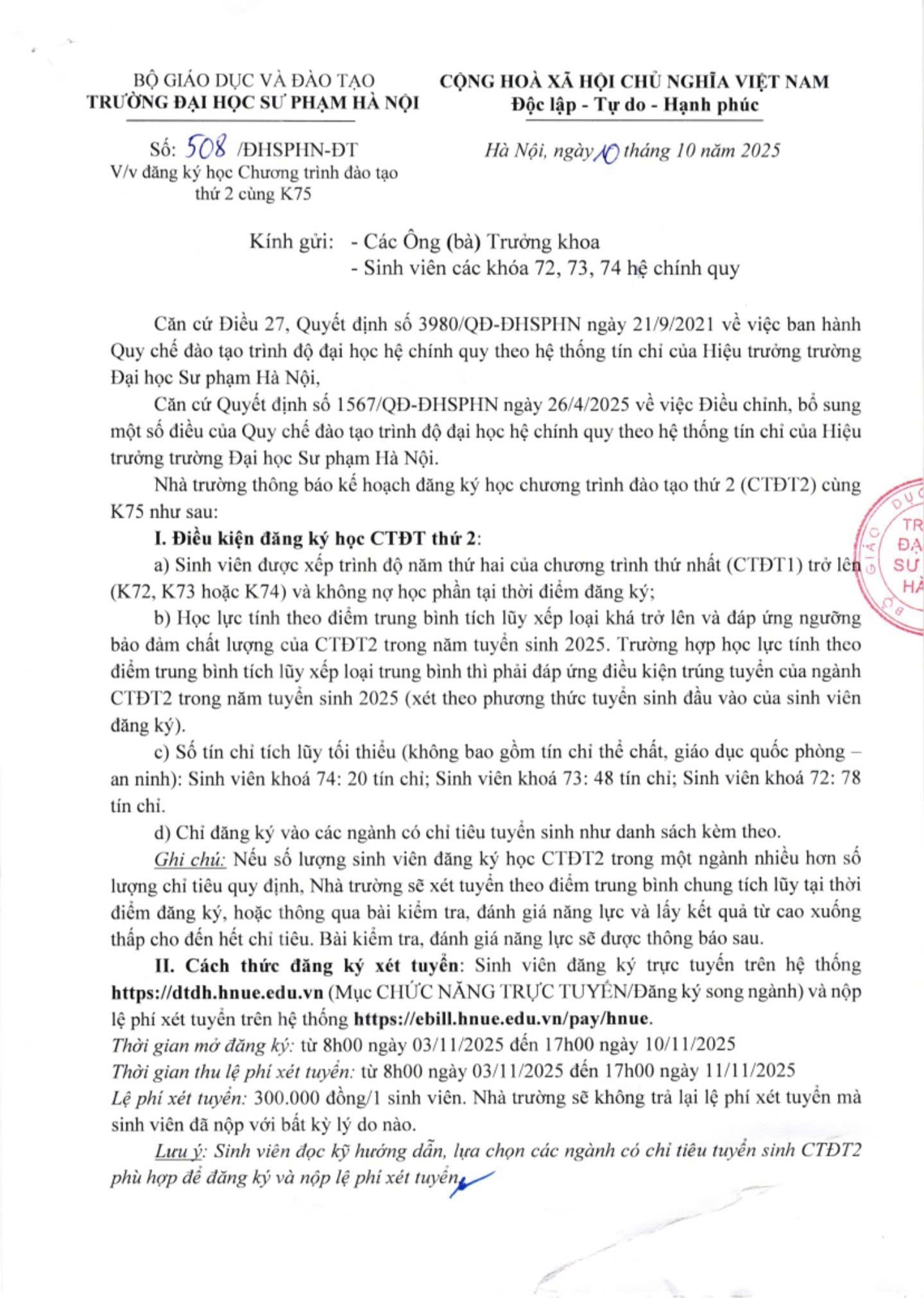 Trường Đại học Sư phạm Hà Nội thông báo đăng ký học Chương trình đào tạo thứ 2 cùng K75