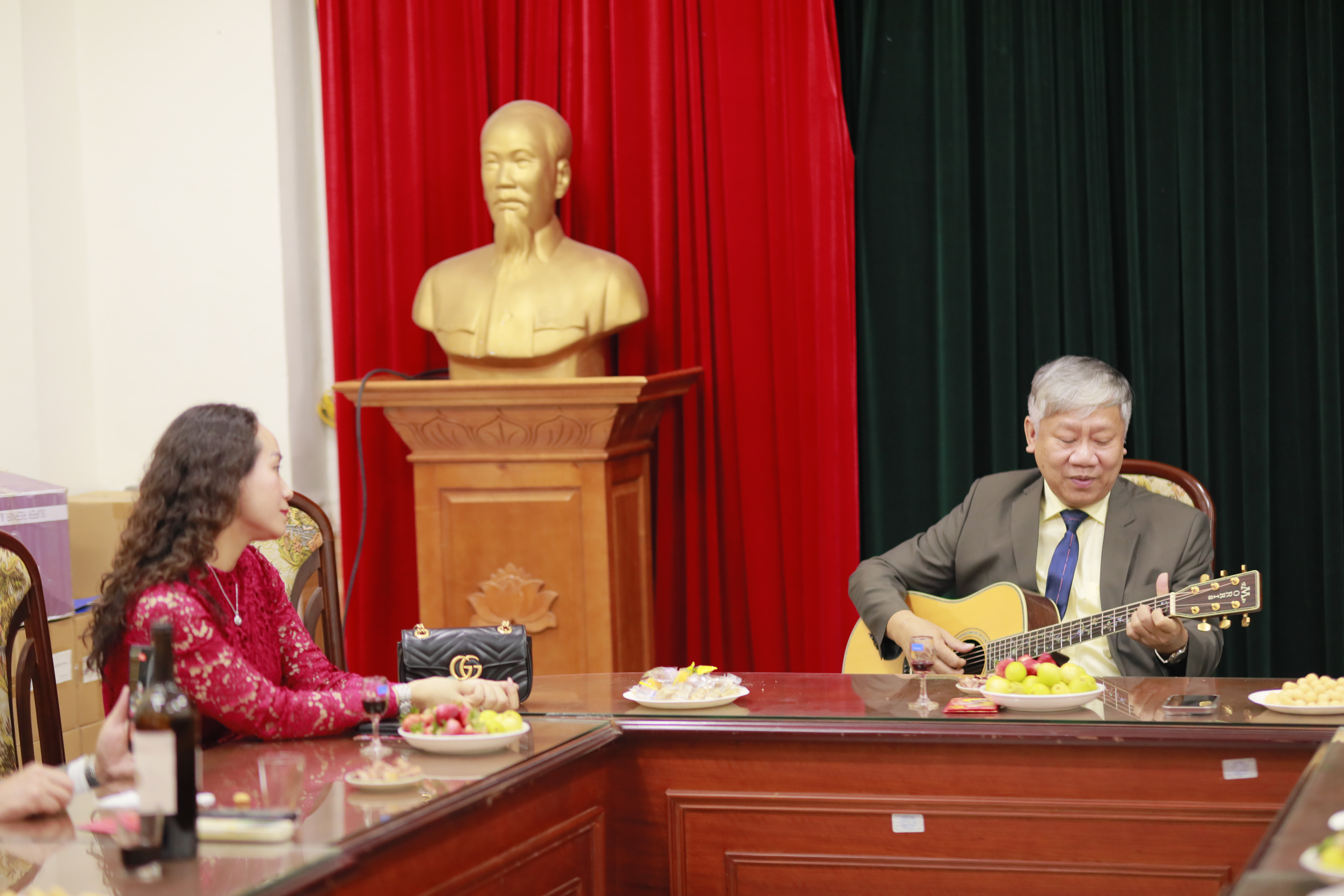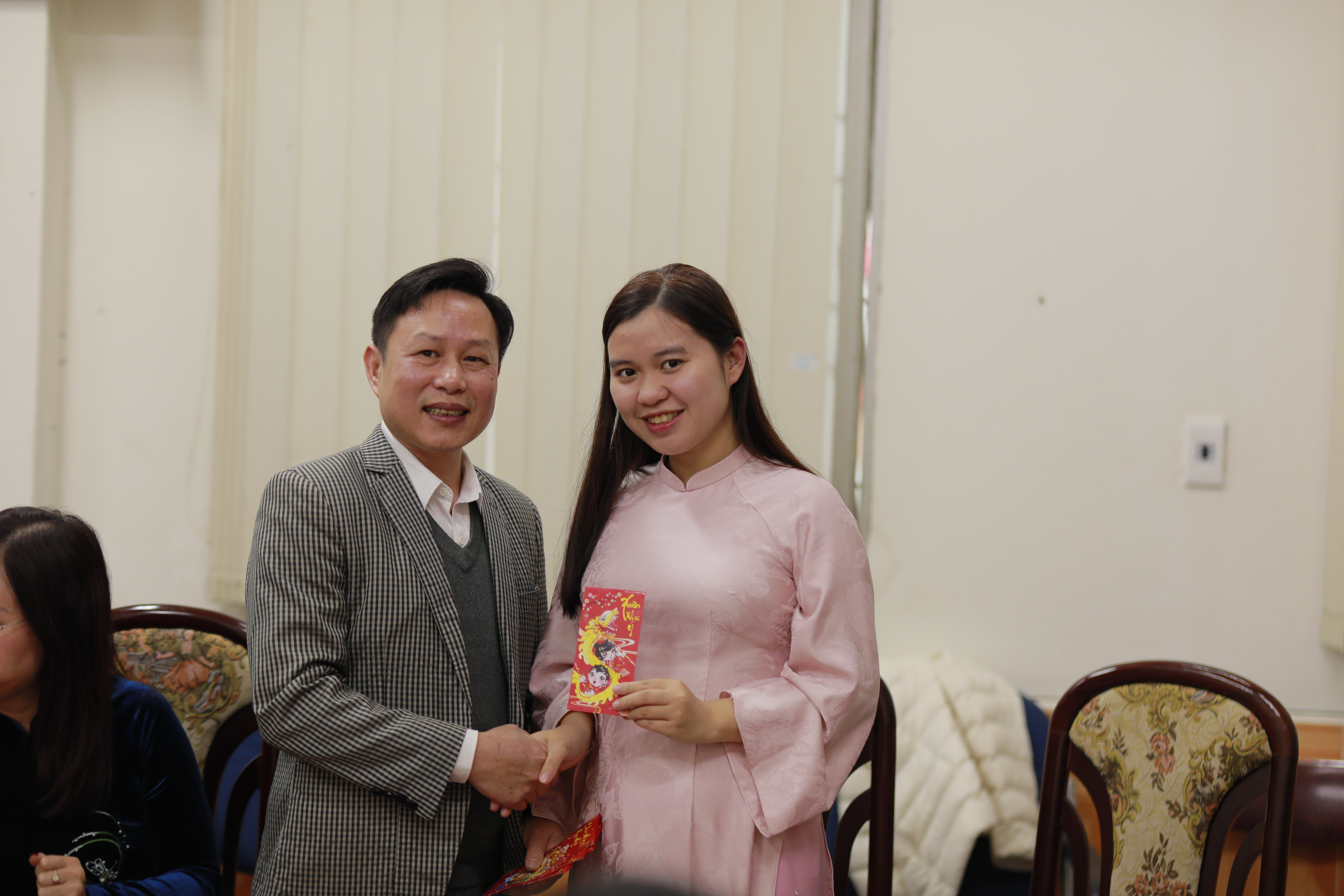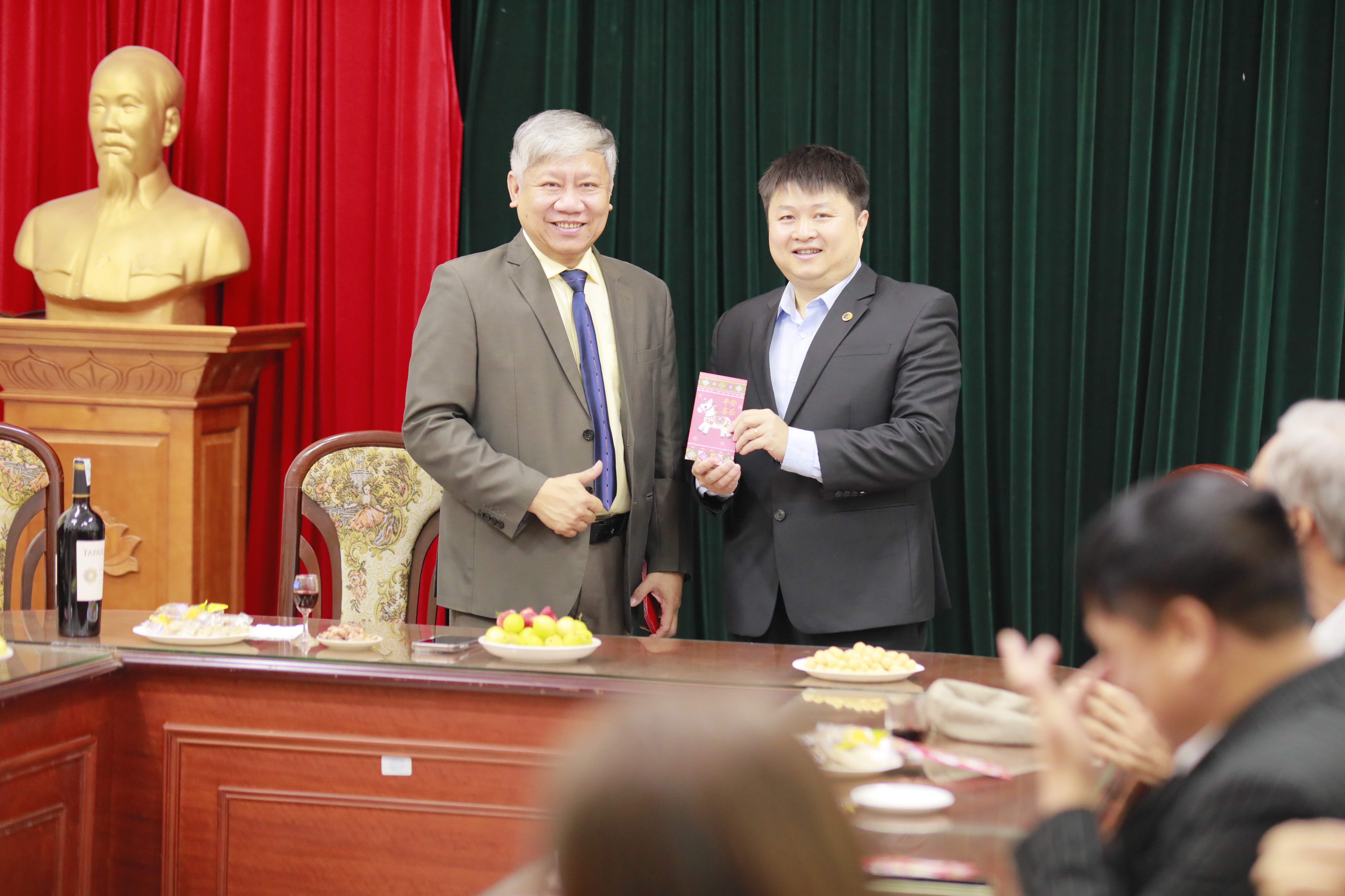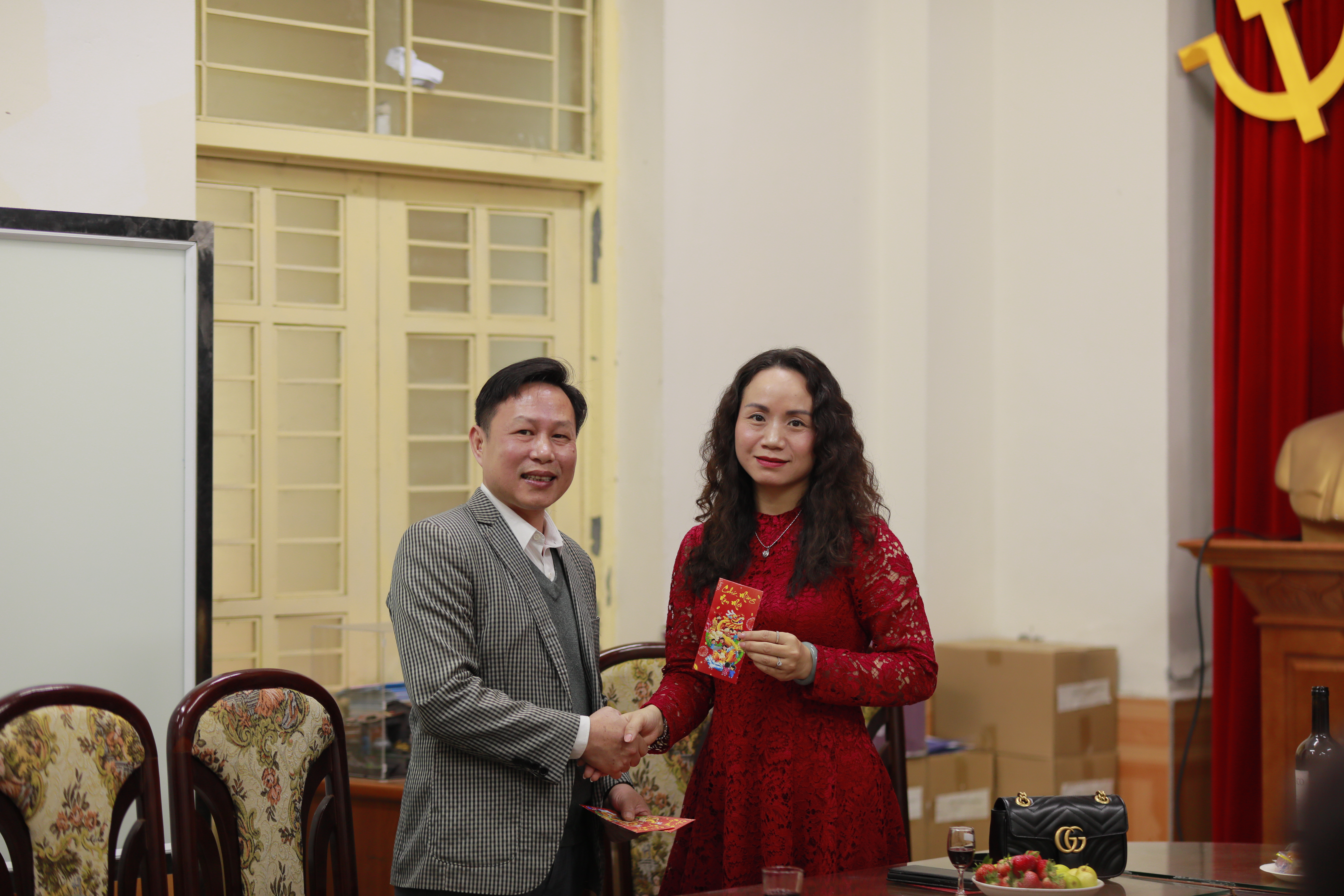 GS.TS. Lê Huy Bắc, Trưởng khoa Việt Nam học trao những phong bao lì xì đỏ may mắn cũng những lời chúc tốt lành tới toàn thể cán bộ, giảng viên trong khoa: